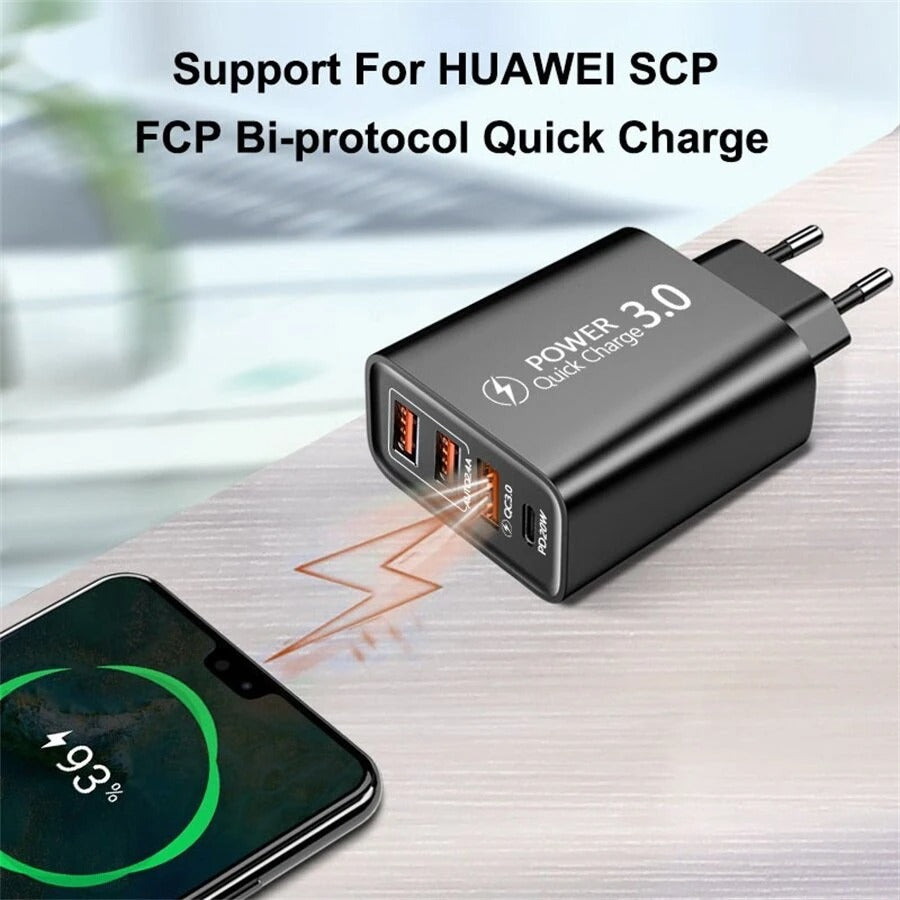 4-Port USB Wall Charger PD QC Fast Power Adapter